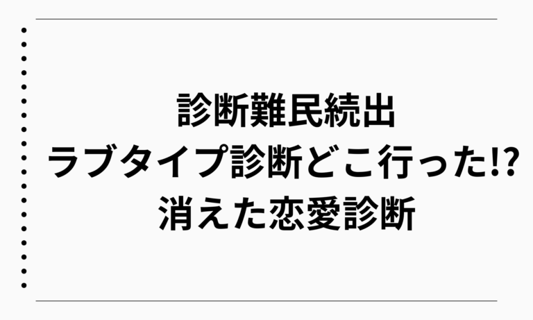 ラブタイプ診断をやりたいのに検索しても出てこない…そんな疑問に答える記事です。診断できない理由や口コミ、代わりに試せる恋愛診断まで徹底解説。