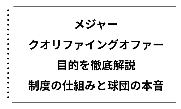 メジャーのクオリファイングオファーの目的をわかりやすく解説。 制度の仕組み、球団と選手の駆け引き、そして今後の展望まで丁寧に紹介します。