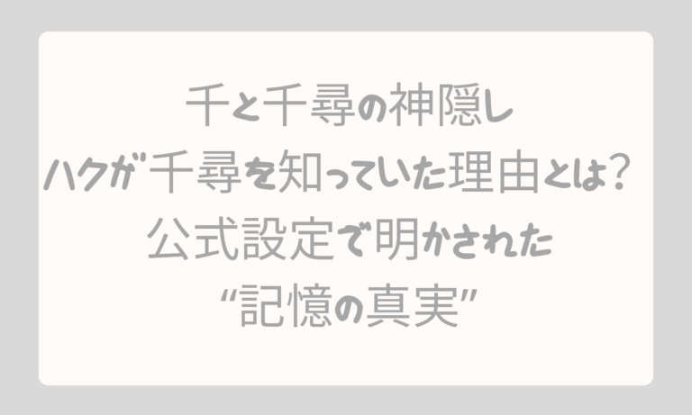『千と千尋の神隠し』でハクが千尋を知っていた理由を公式設定から徹底解説。ハクの本名「ニギハヤミコハクヌシ」とは何か、兄妹説や恋愛説の真偽、宮崎駿監督が語った“思い出すこと”の意味まで詳しく紹介します。