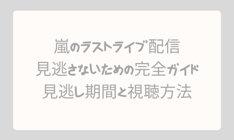 嵐のラストライブ配信の視聴方法や見逃し配信の期間、FC限定特典を徹底解説。 配信を見逃さないための準備や最新情報の確認方法も紹介します。
