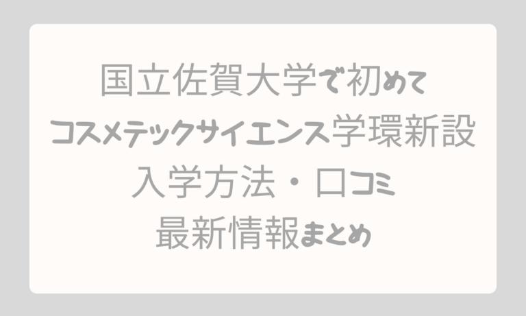 佐賀大学が国立で初めて新設したコスメテックサイエンス学環。化粧品と科学を融合した最先端の学びや入試情報、口コミ、最新ニュースを詳しく紹介。