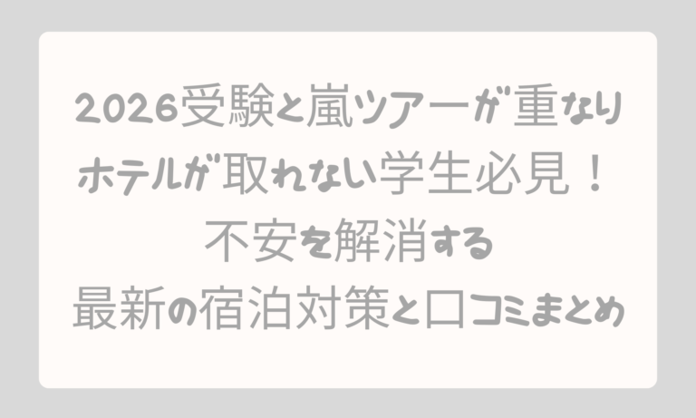 2026年の受験と嵐ツアーが重なり、ホテルが取れない学生が急増。この記事では不安を解消する宿泊対策、口コミ、最新情報の確認方法をわかりやすく解説します。