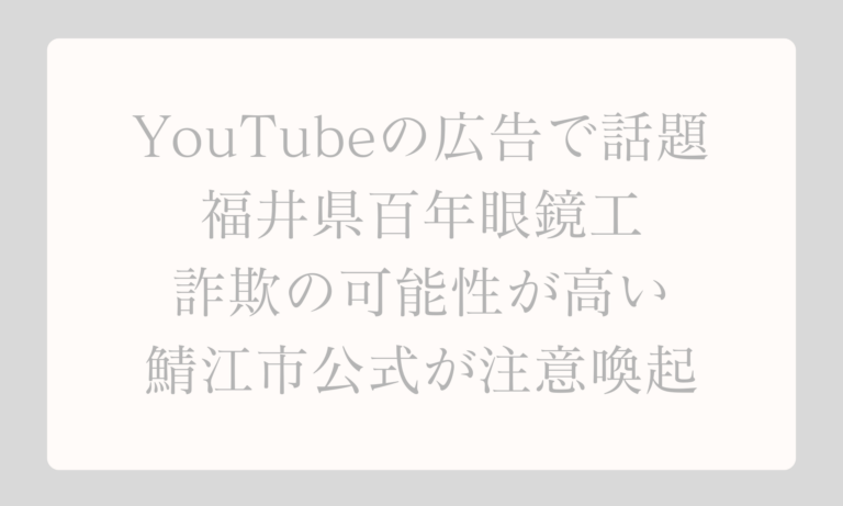 YouTubeの広告で見かける「福井県百年眼鏡工」は本物ではありません。 鯖江市が正式に注意喚起を出しています。 詐欺の見分け方と正しい対処法を分かりやすく解説します。