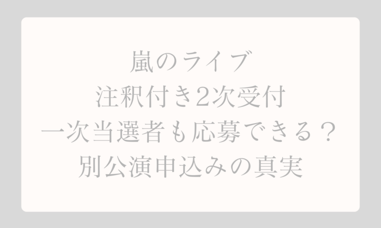 嵐のライブ注釈付き2次受付は、一次当選者も別公演なら申し込み可能?公式文面をもとに応募条件や注意点、注釈付き席の見え方まで徹底解説。迷っているファンが安心して判断できるガイドです。
