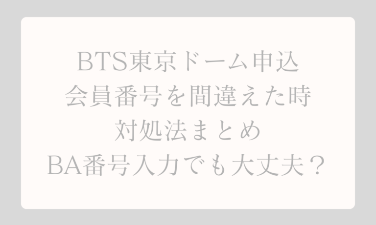 BTS東京ドーム申込で会員番号を間違えた方へ。BA番号とJPFC番号の違い、訂正や取消の方法、公式への問い合わせ手順をわかりやすく解説。焦らず確認すれば大丈夫です。