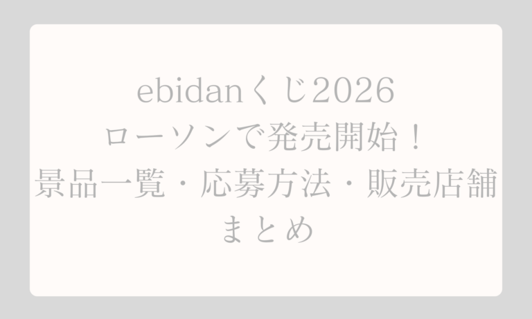 ebidanくじ2026がローソン・HMVで1月23日から販売開始!テーマは「I want to spend my holidays with you!」。A賞〜ラスト賞の豪華景品一覧や応募方法、販売店舗、再販情報を徹底解説。ファン必見の最新EBiDANくじまとめ。