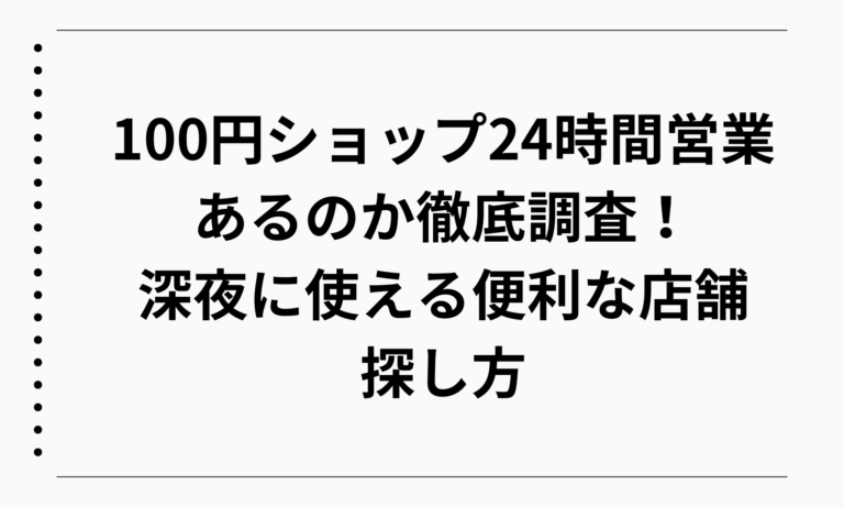 この記事では、100円ショップ24時間営業の実態からメリットやデメリット、探し方のコツまで徹底的に解説します。