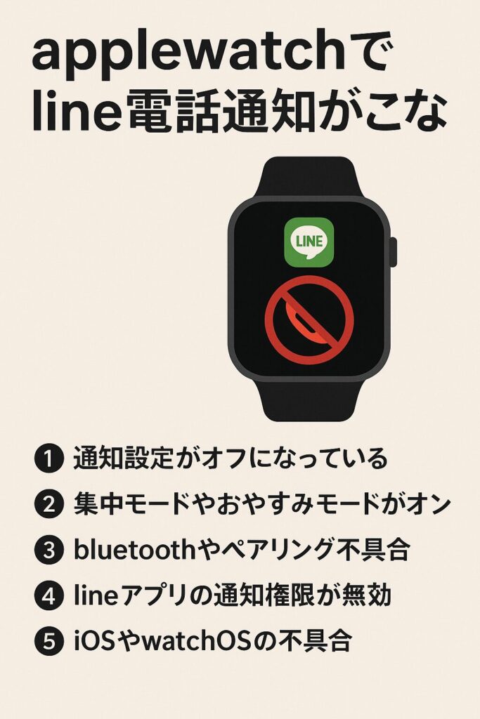 applewatchでline電話通知がこない原因は、通知設定やbluetooth接続、アプリやosの不具合など複数考えられます。