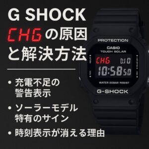g shock chg 点滅は、主に充電不足によって現れるサインであり、ソーラーモデルに特有の警告です。