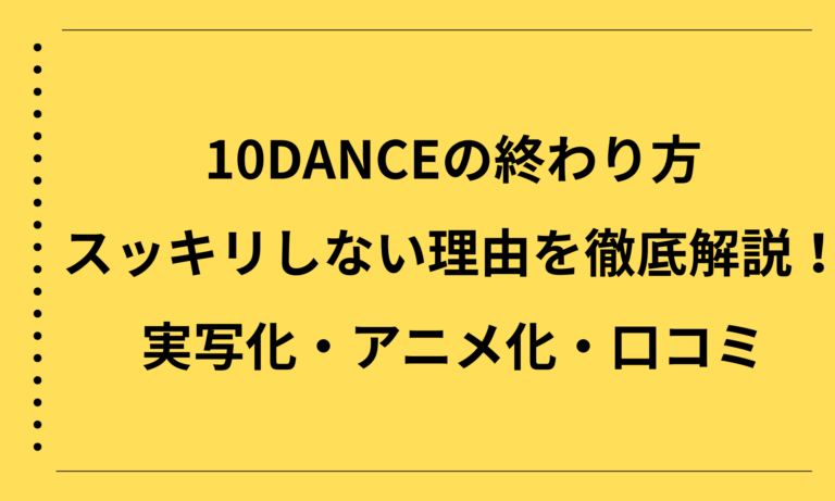 10DANCEの終わり方がスッキリしないと感じた理由を徹底解説します。