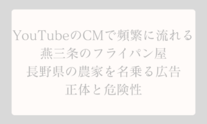 YouTubeのCMで最近頻繁に流されている、燕三条のフライパン屋ですが、長野県の農家、日本の眼鏡屋などと名乗る広告について、不安や違和感を覚えた人は少なくありません。