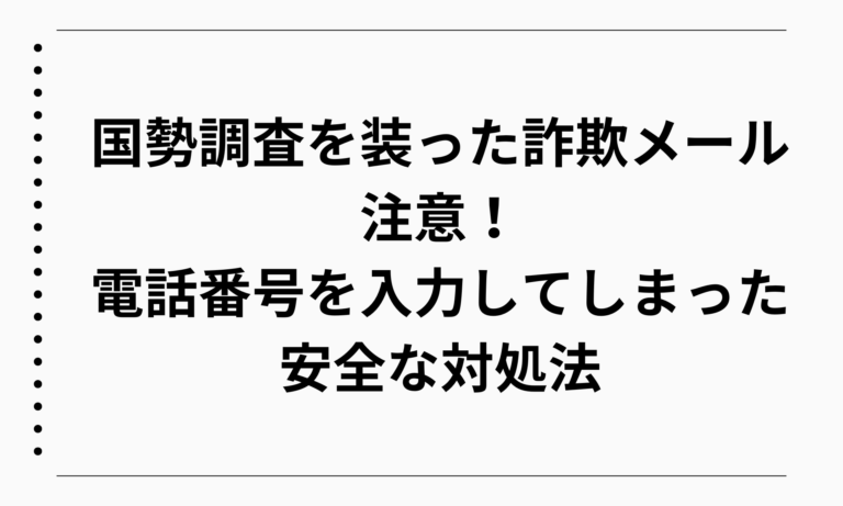 国勢調査を名乗る詐欺メールに注意!「罰金」「至急」と書かれた不審なメールに電話番号を入力してしまった場合の安全性と、今すぐできる対処法を解説します。