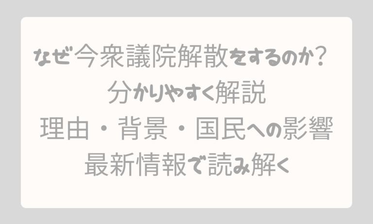 なぜ今衆議院解散をするのか。その理由と背景を子供にも分かるようにやさしく解説。最新の政治動向や国民への影響まで詳しく紹介します。