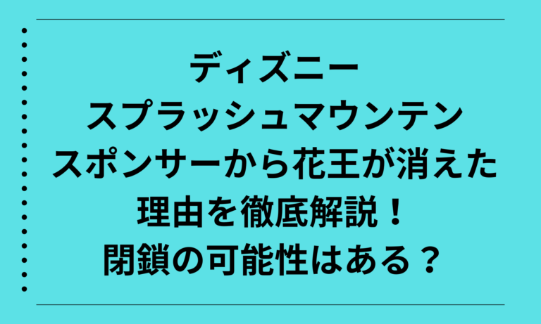 ディズニースプラッシュマウンテンのスポンサーから花王が消えた理由を徹底解説。契約終了の背景やクローズの可能性、メンテナンス再開の予定まで最新情報を紹介します。